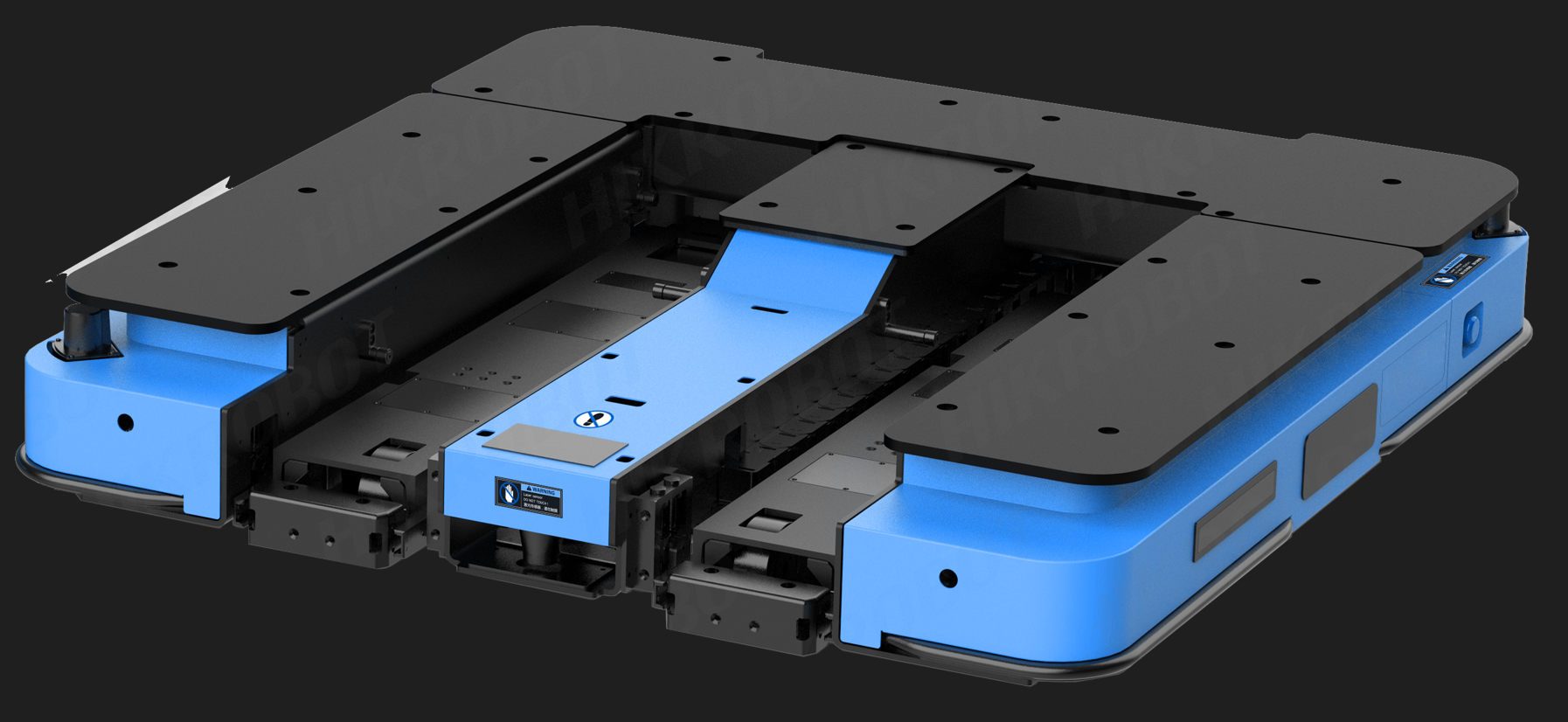 車身低矮,可以進入低矮的料架地下牽引。潛伏牽引并且雙向運行可以使轉彎半徑縮小,占地面積小。 驅動單元一鍵電動升降方便維護。最多可以指定1024個站點。 激光傳感器安全防護到位